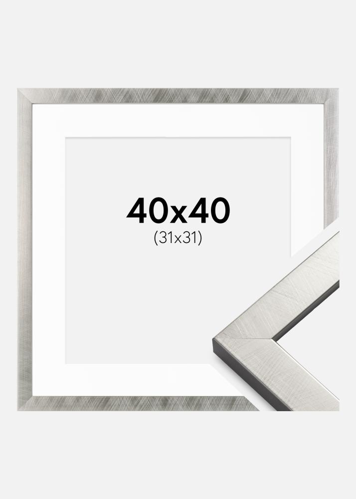 Rahmen Uppsala Silber 40x40 cm - Passepartout Weiß 32x32 cm