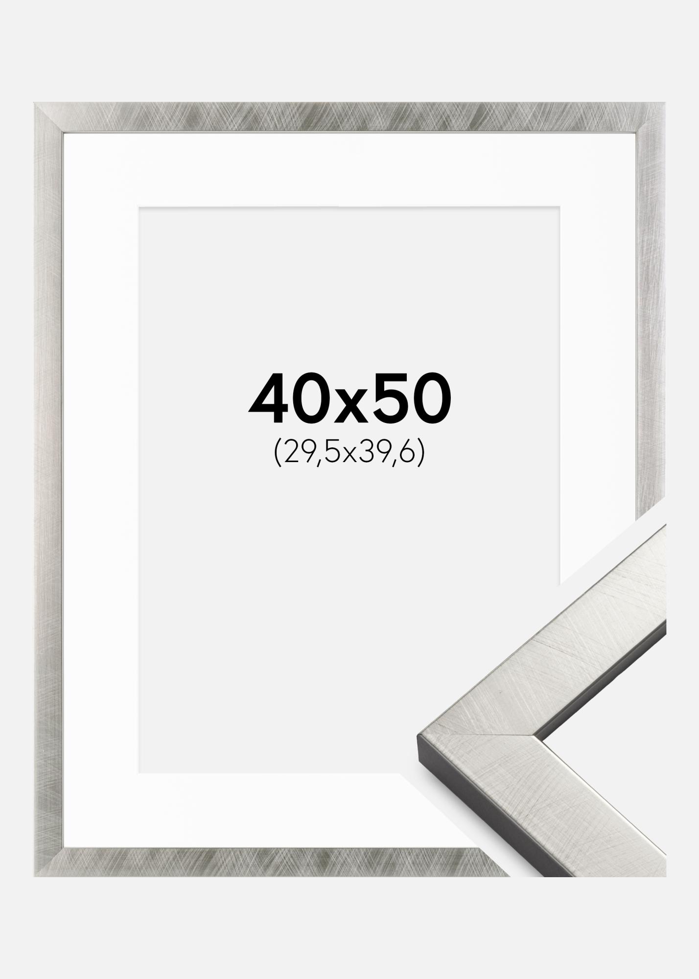 Rahmen Uppsala Silber 40x50 cm - Passepartout Weiß 12x16 inches