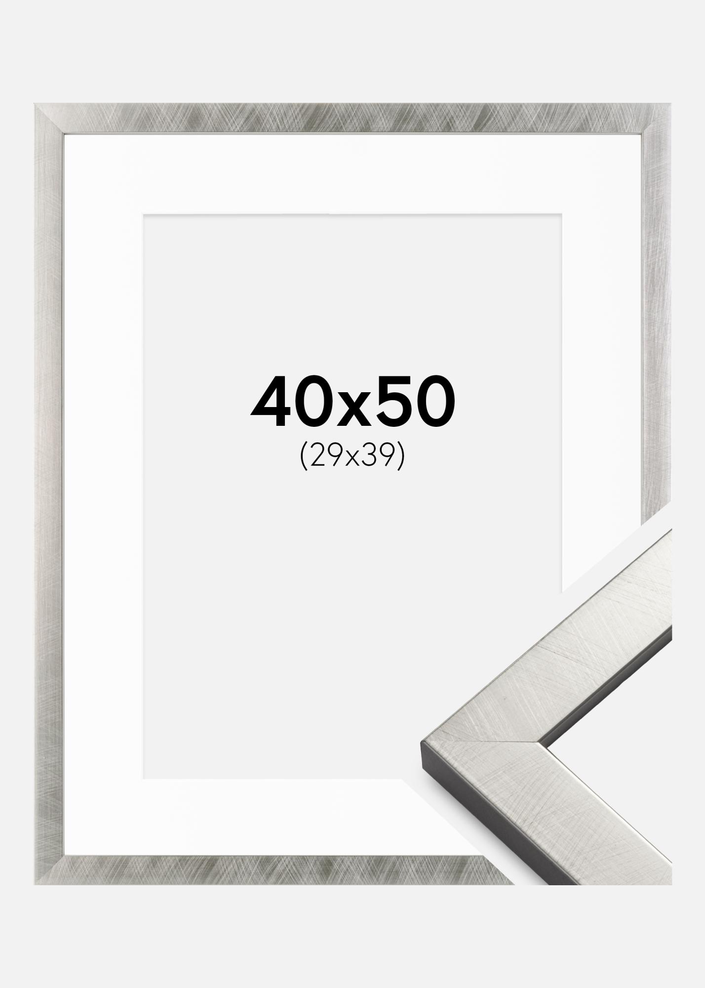 Rahmen Uppsala Silber 40x50 cm - Passepartout Weiß 30x40 cm