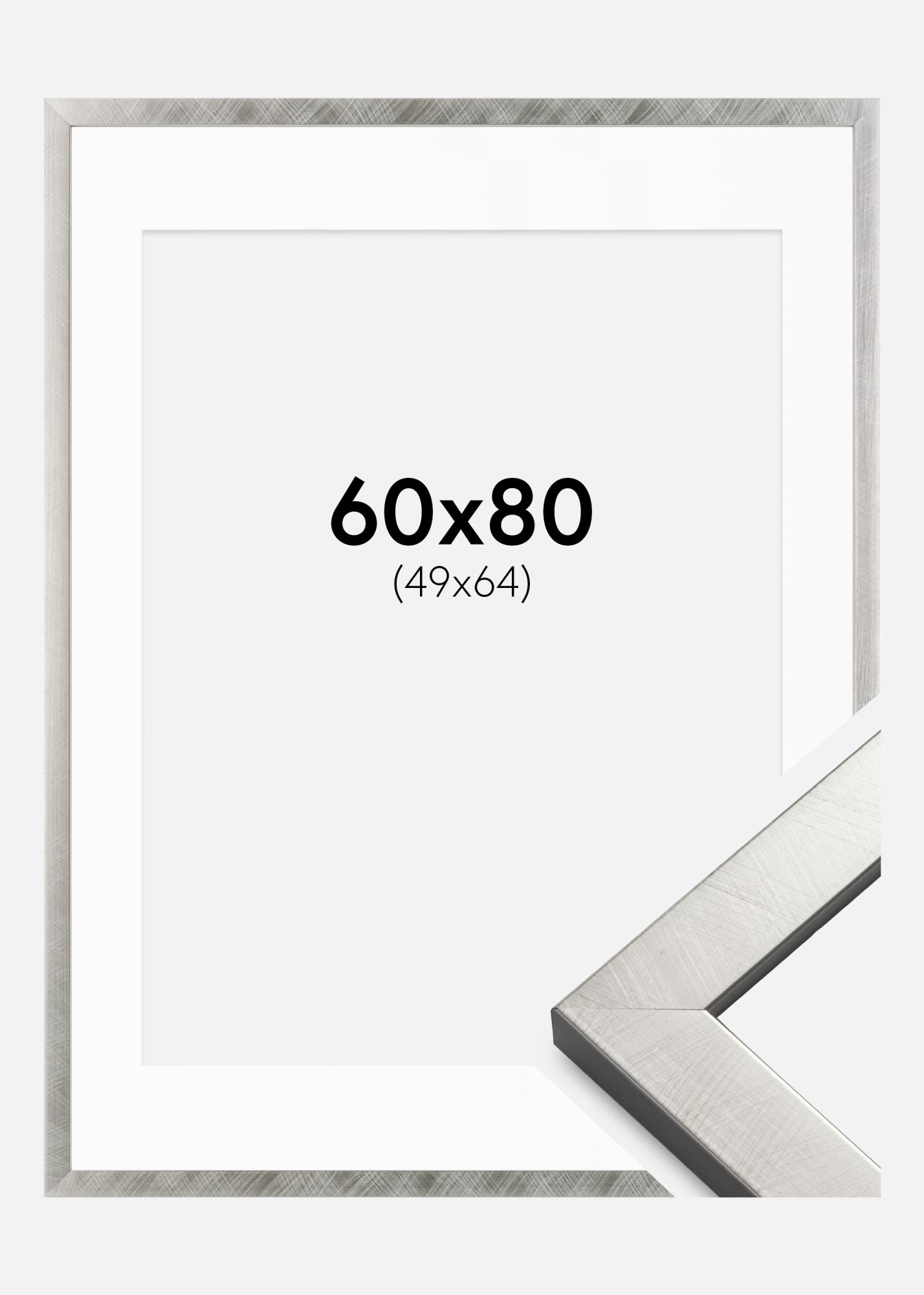 Rahmen Uppsala Silber 60x80 cm - Passepartout Weiß 50x65 cm