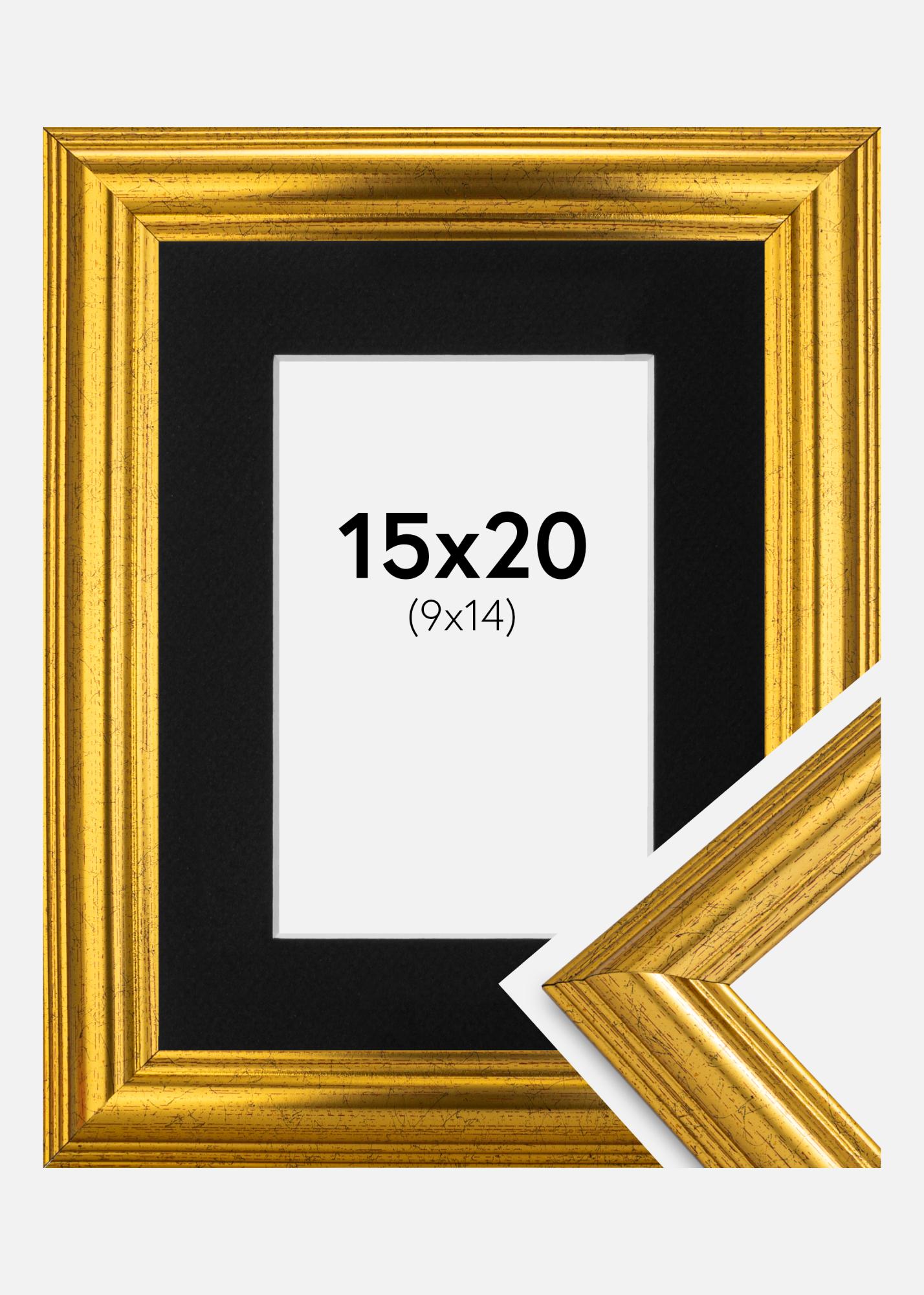 Rahmen Västkusten Gold 15x20 cm - Passepartout Schwarz 10x15 cm