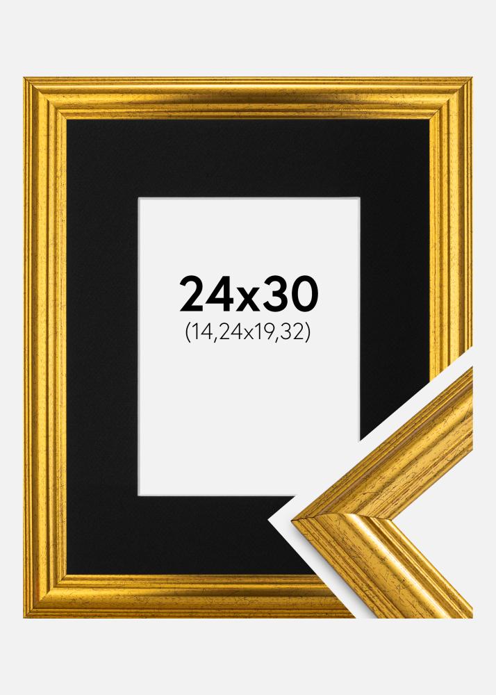 Rahmen Västkusten Gold 24x30 cm - Passepartout Schwarz 6x8 inches