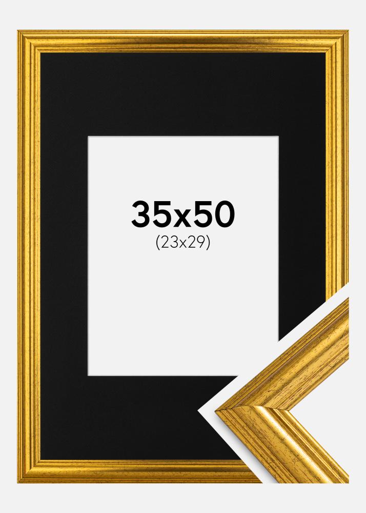 Rahmen Västkusten Gold 35x50 cm - Passepartout Schwarz 24x30 cm