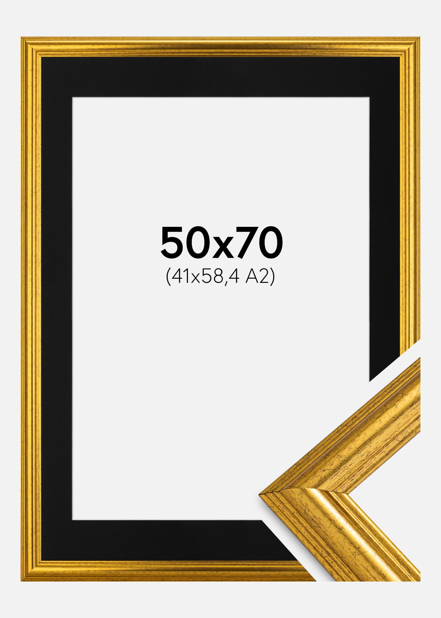 Rahmen Västkusten Gold 50x70 cm - Passepartout Schwarz 42x59,4 cm (A2)