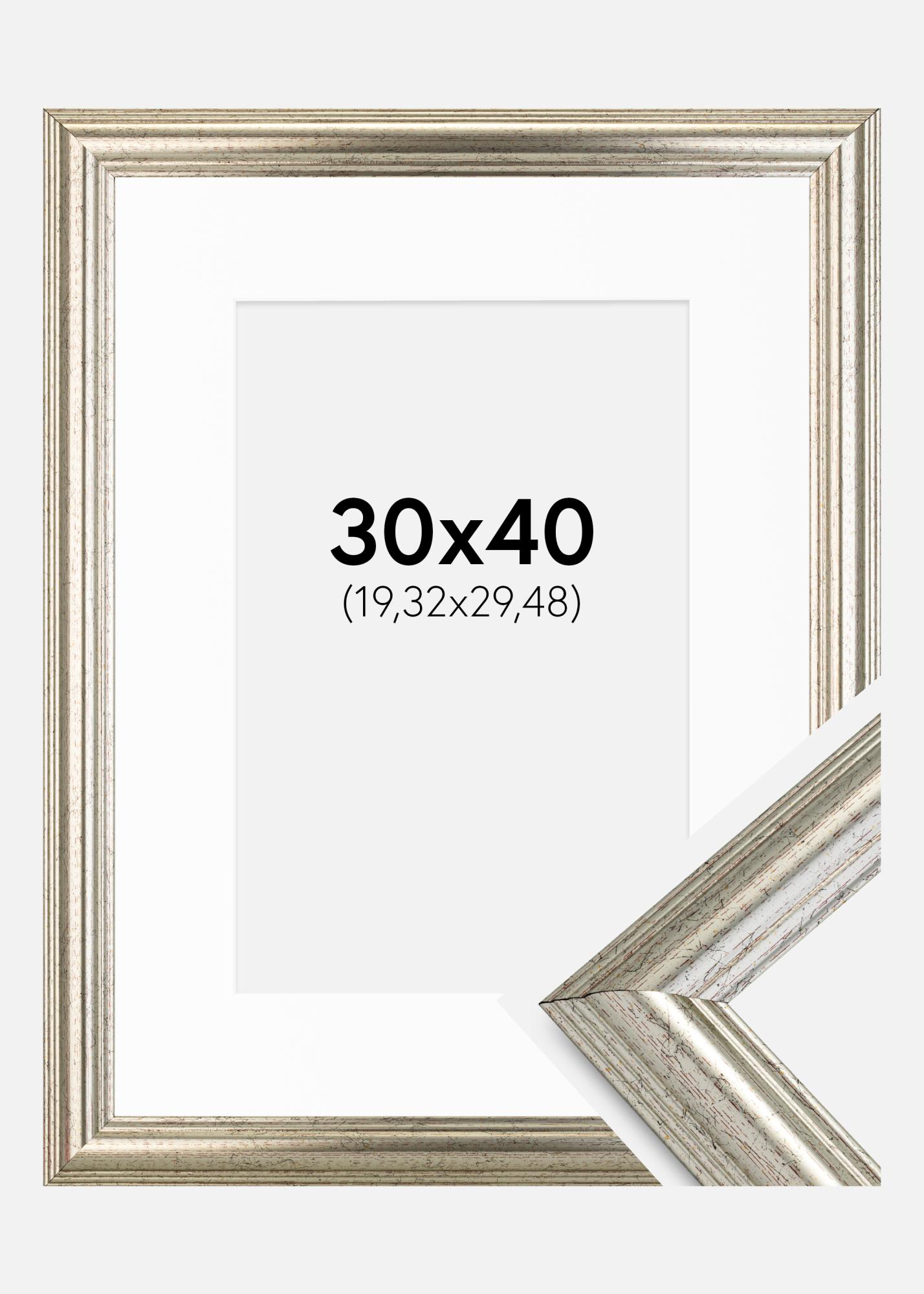 Rahmen Västkusten Silber 30x40 cm - Passepartout Weiß 8x12 inches