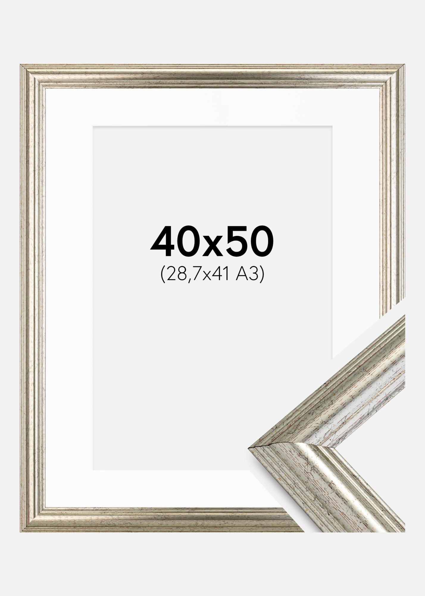 Rahmen Västkusten Silber 40x50 cm - Passepartout Weiß 29,7x42 cm (A3)