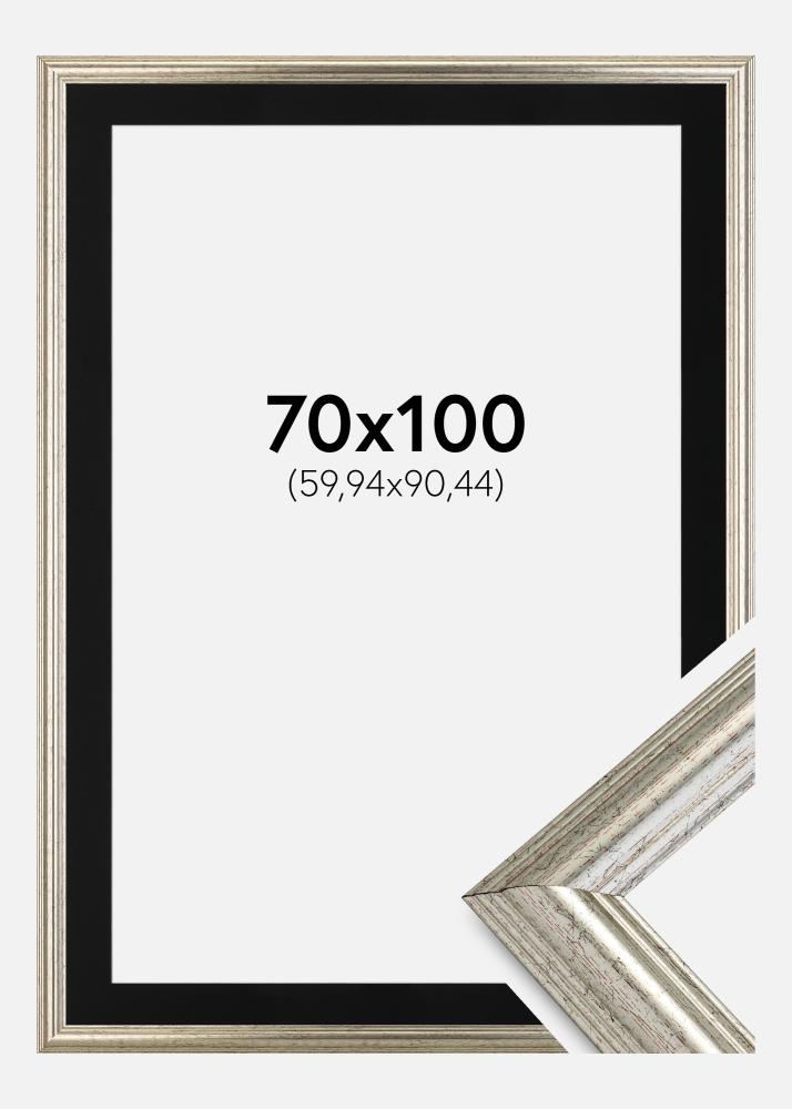 Rahmen Västkusten Silber 70x100 cm - Passepartout Schwarz 24x36 inches