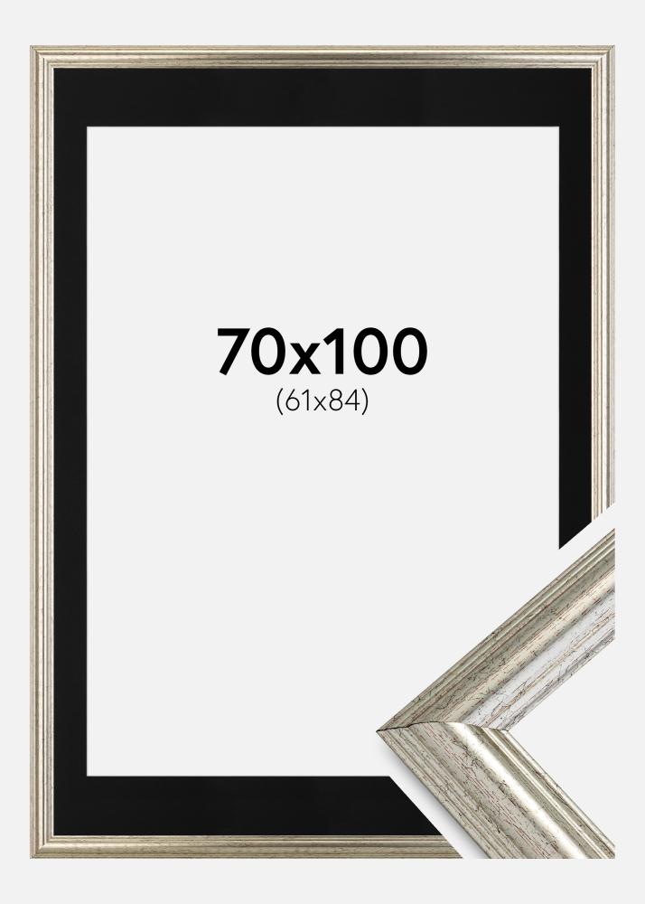 Rahmen Västkusten Silber 70x100 cm - Passepartout Schwarz 62x85 cm