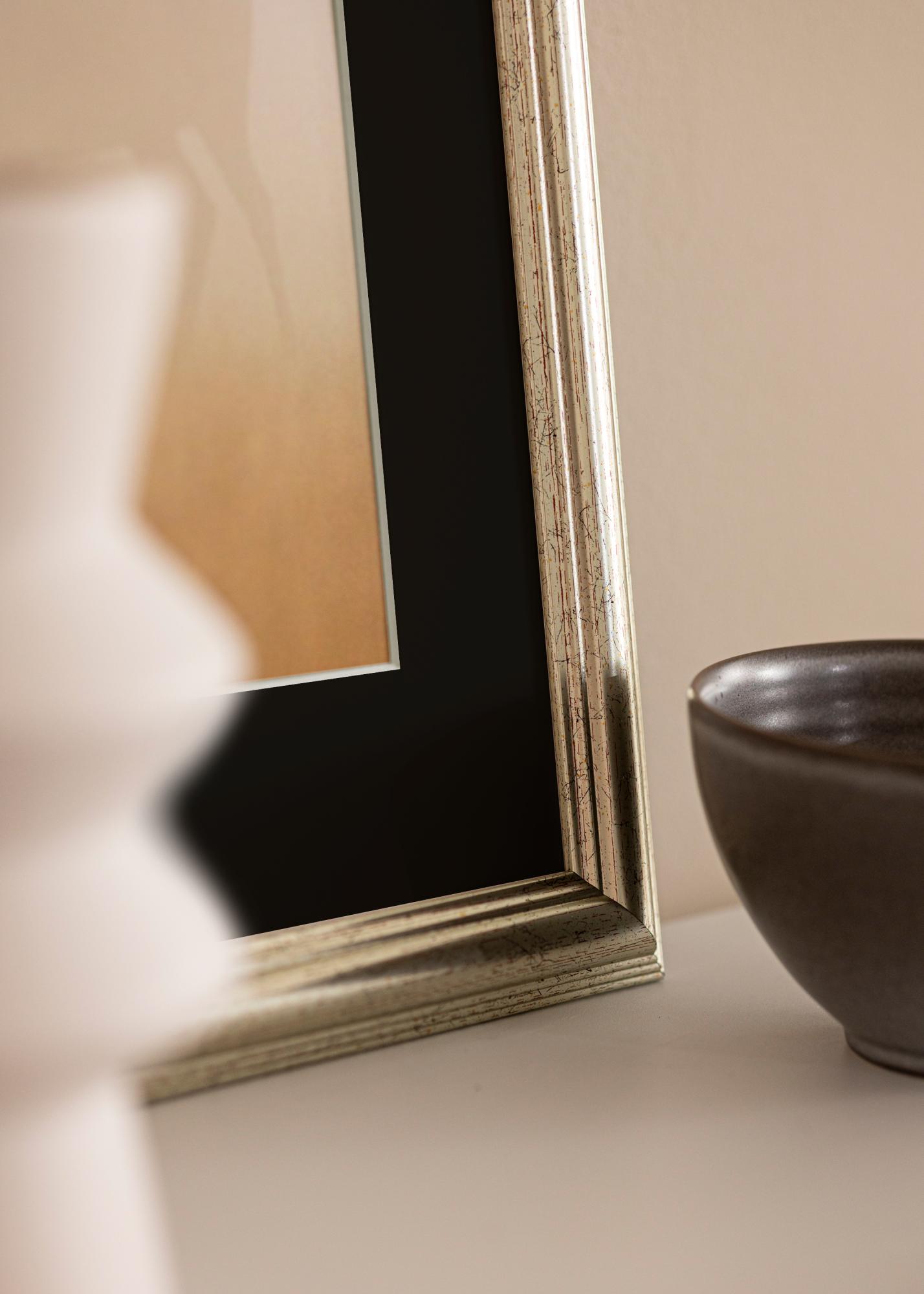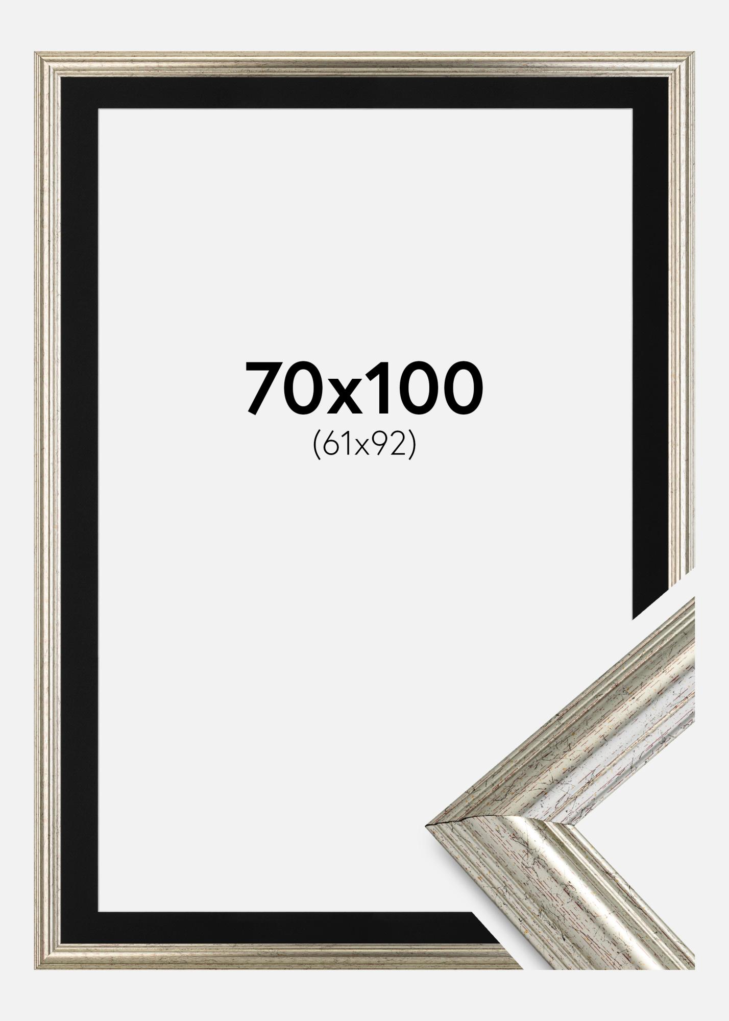 Rahmen Västkusten Silber 70x100 cm - Passepartout Schwarz 62x93 cm