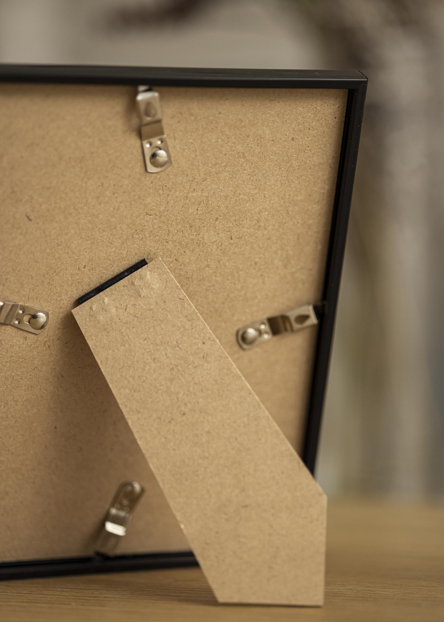 Der Rahmen ist aus einem leichten Material gefertigt und mit Acrylglas versehen, das eine splitterfreie Glasvariante mit kristallklarer Schärfe ist. Auf der Rückseite befindet sich eine Rückwand aus HDF, die Sie leicht lösen können, wenn Sie Ihre Bilder in den Rahmen einsetzen möchten. Dies geschieht durch Drehen der kleinen Metallclips, die die Rückwand an ihrem Platz halten.