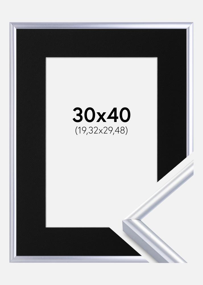 Rahmen Victoria Silber 30x40 cm - Passepartout Schwarz 8x12 inches