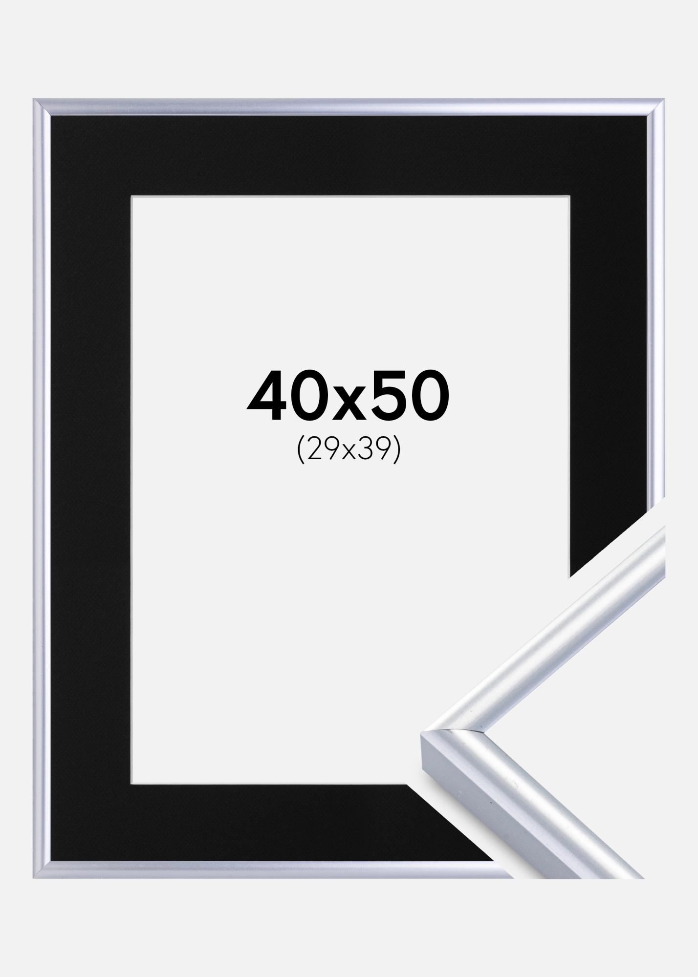 Rahmen Victoria Silber 40x50 cm - Passepartout Schwarz 30x40 cm