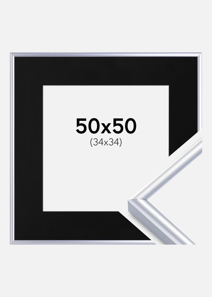 Rahmen Victoria Silber 50x50 cm - Passepartout Schwarz 35x35 cm