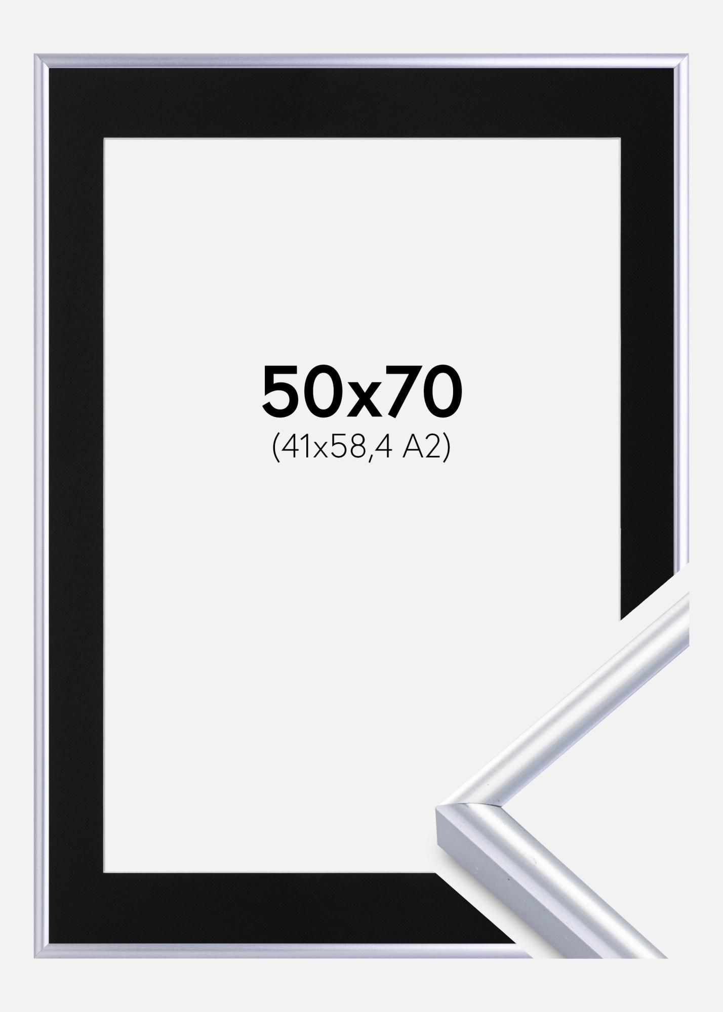 Rahmen Victoria Silber 50x70 cm - Passepartout Schwarz 42x59,4 cm (A2)