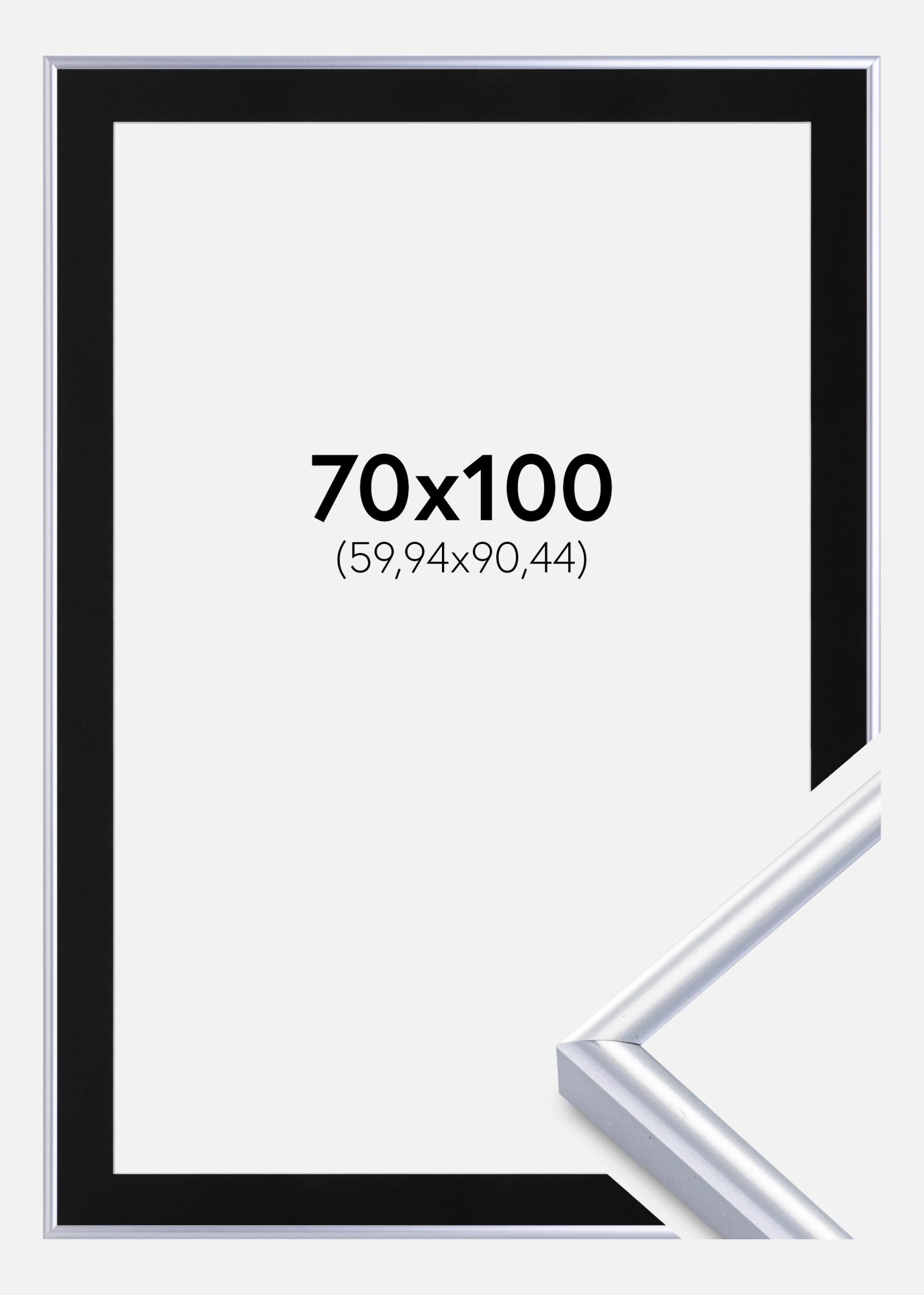 Rahmen Victoria Silber 70x100 cm - Passepartout Schwarz 24x36 inches
