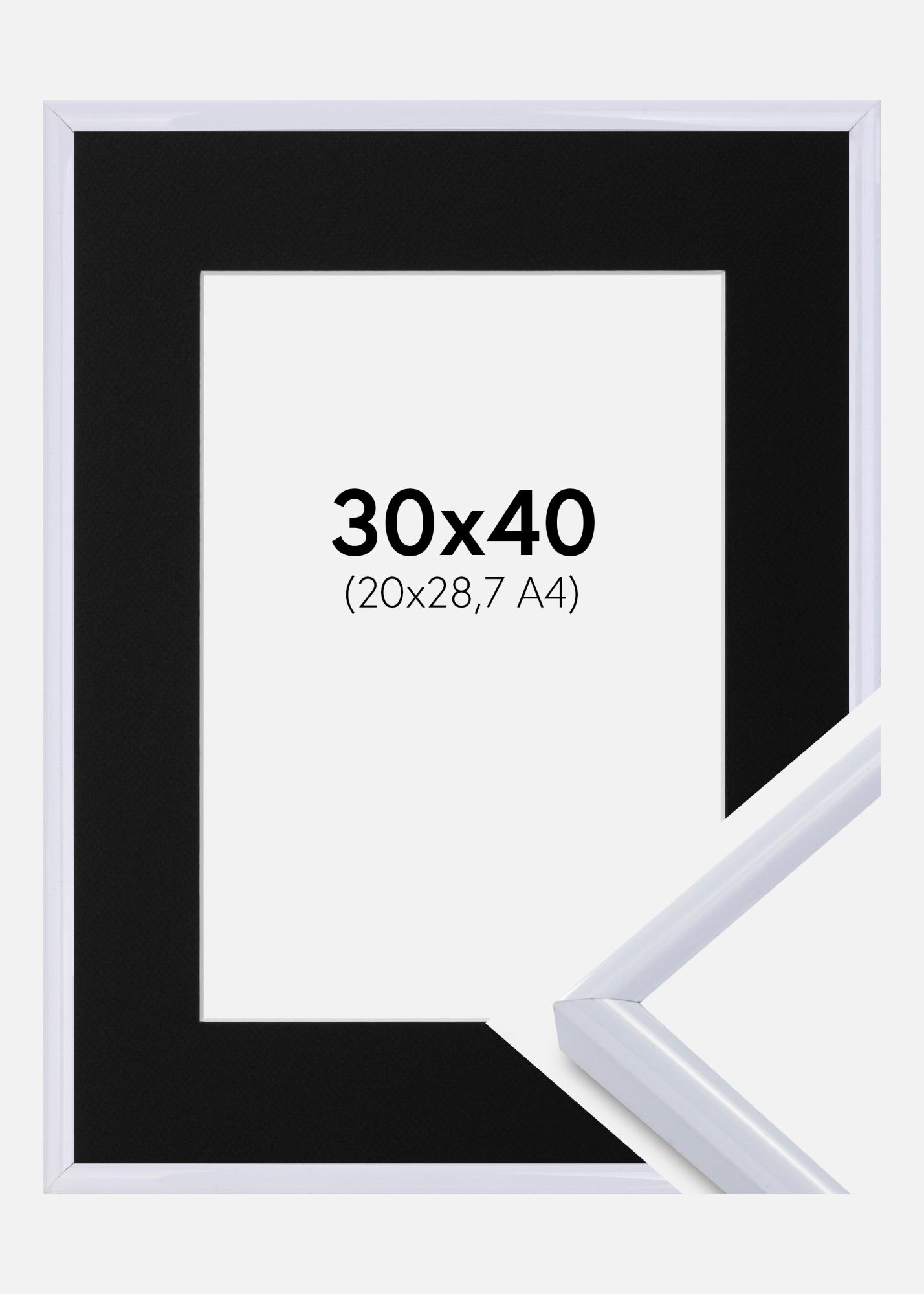 Rahmen Victoria Weiß 30x40 cm - Passepartout Schwarz 21x29,7 cm (A4)