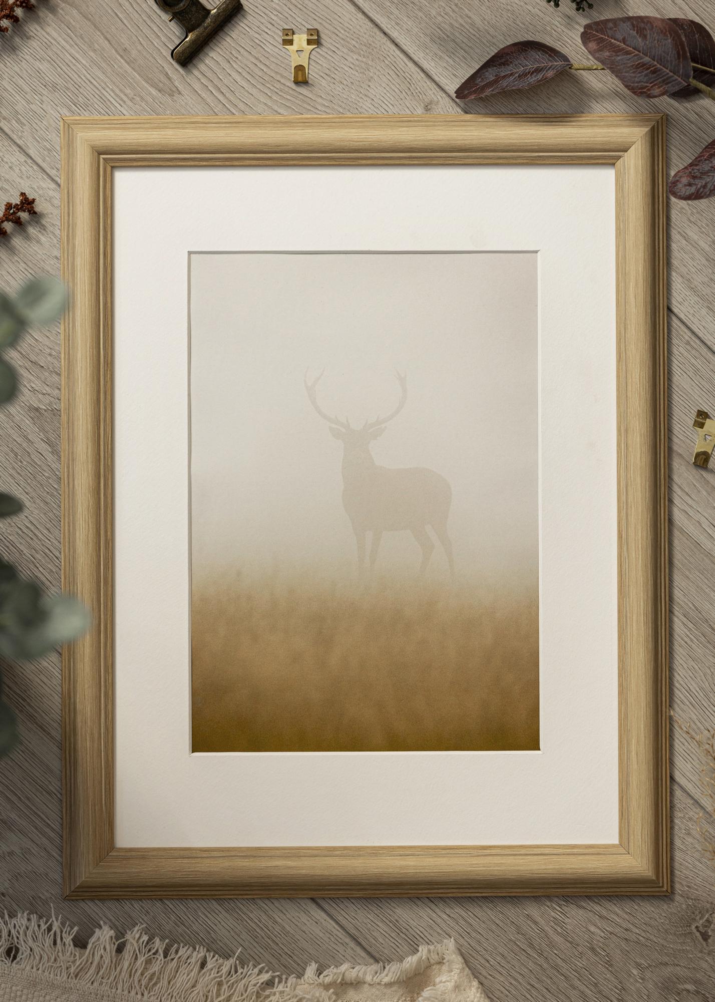 Der Rahmen hat eine Breite von 31 mm und eine Tiefe von 17 mm, was ein robustes und stabiles Gefühl verleiht. Sein mattes Finish in Kombination mit dem weißen Passepartout schafft ein harmonisches Gleichgewicht, das Ihr Bild in den Mittelpunkt stellt.