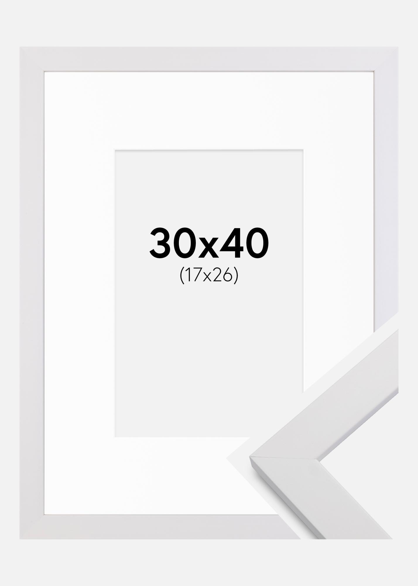 Rahmen White Wood 30x40 cm - Passepartout Weiß 18x27 cm