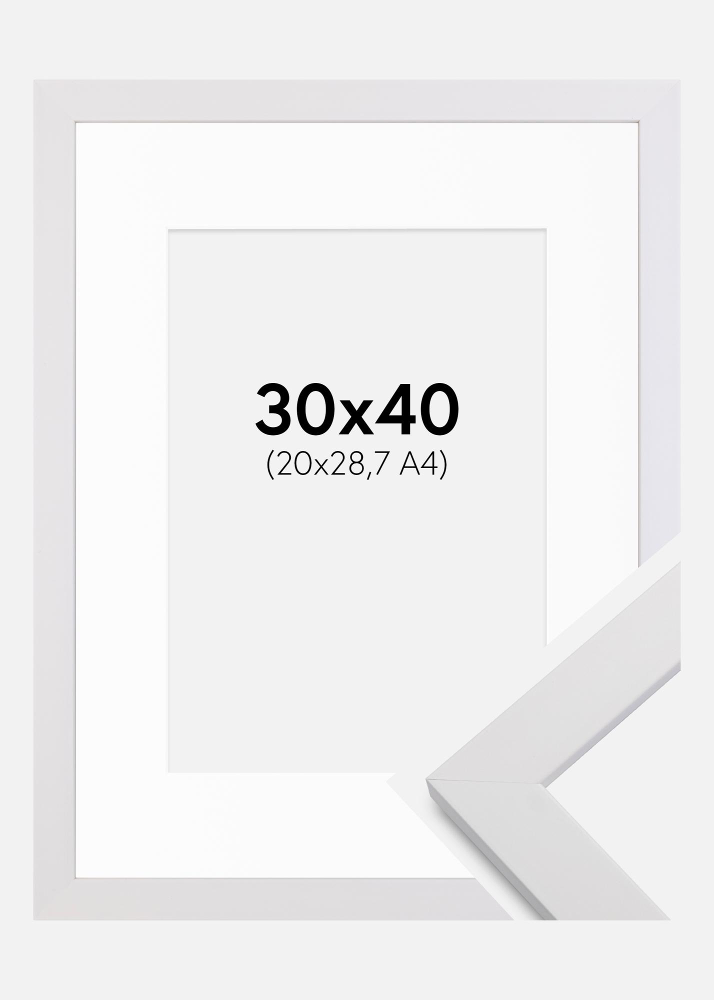 Rahmen White Wood 30x40 cm - Passepartout Weiß 21x29,7 cm (A4)