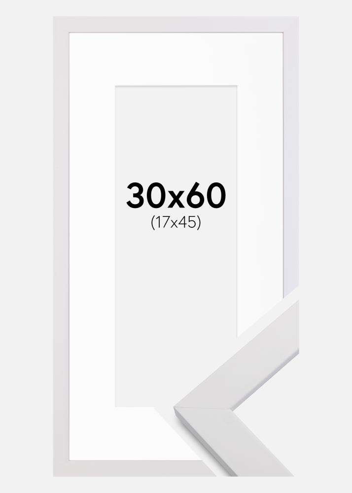 Rahmen White Wood 30x60 cm - Passepartout Weiß 18x46 cm