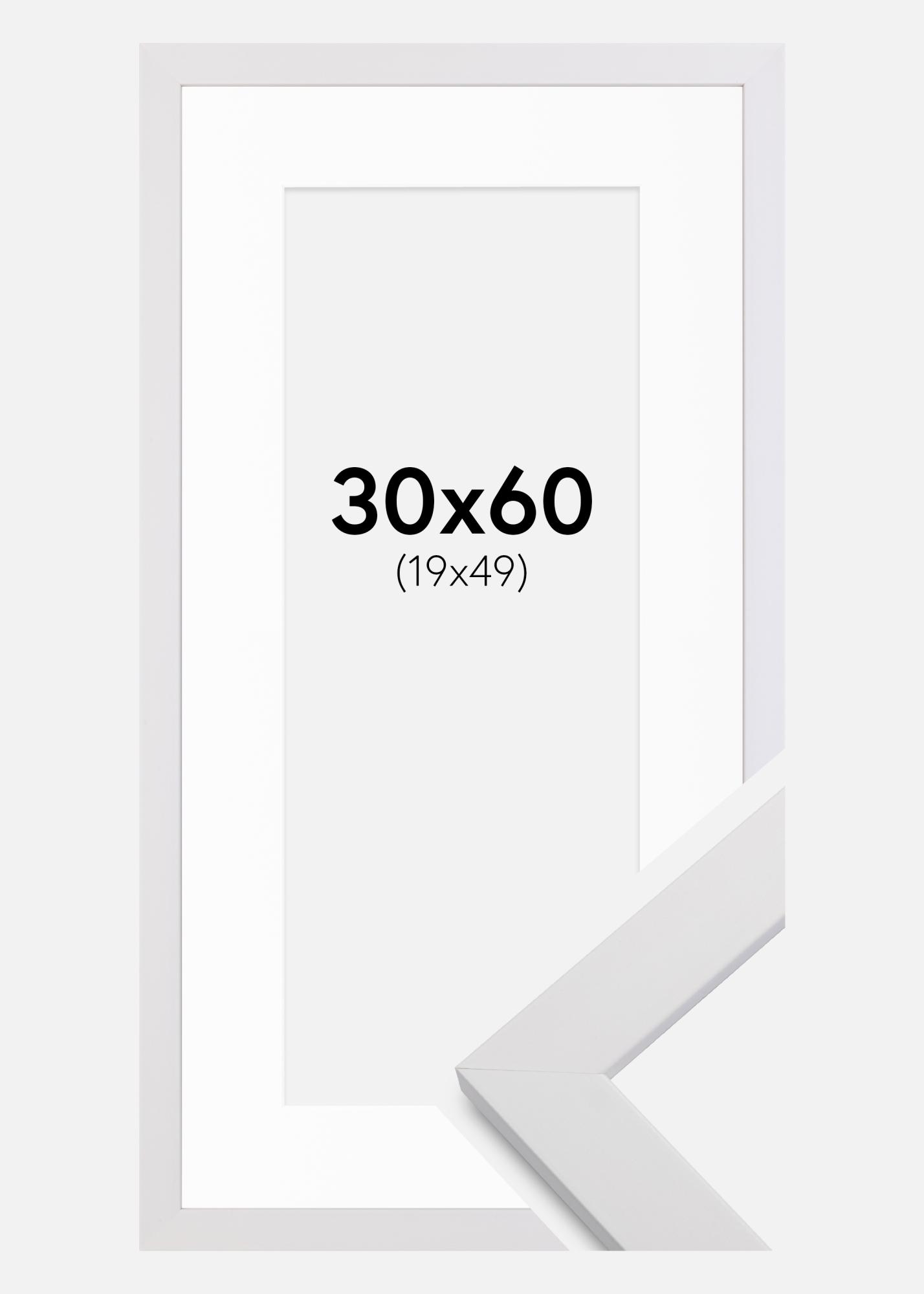 Rahmen White Wood 30x60 cm - Passepartout Weiß 20x50 cm