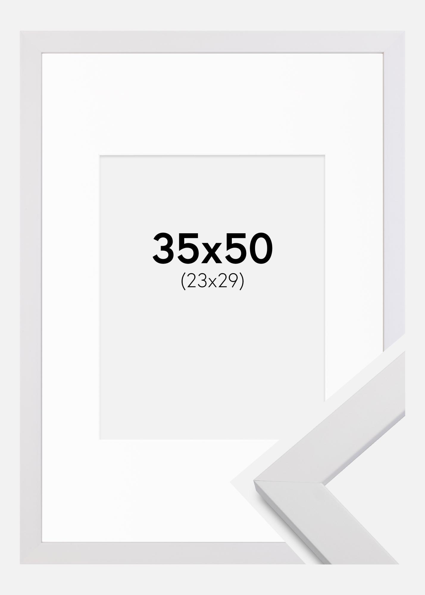 Rahmen White Wood 35x50 cm - Passepartout Weiß 24x30 cm