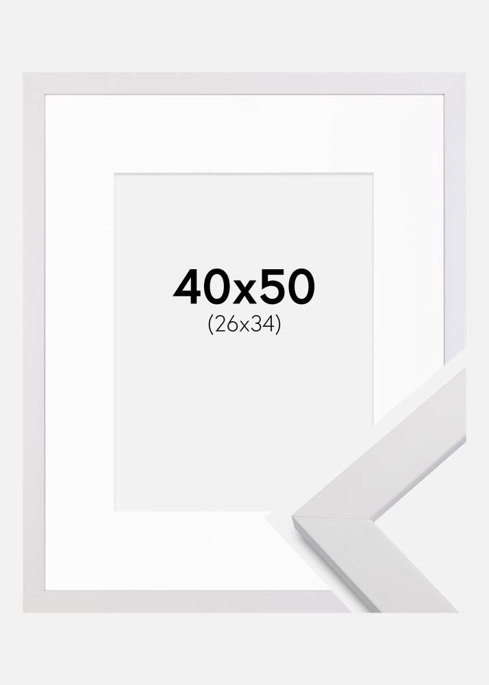 Rahmen White Wood 40x50 cm - Passepartout Weiß 27x35 cm