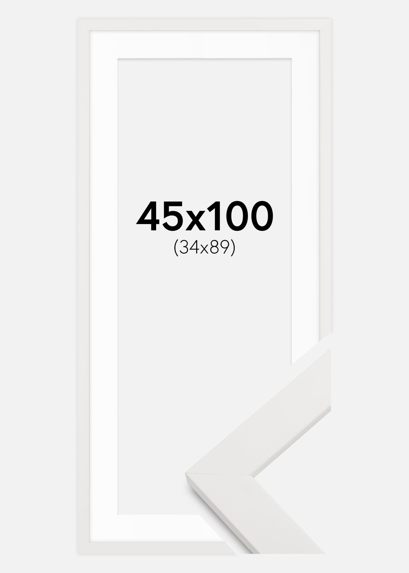 Rahmen Weiß Holz 45x100 cm - Passepartout Weiß 35x90 cm