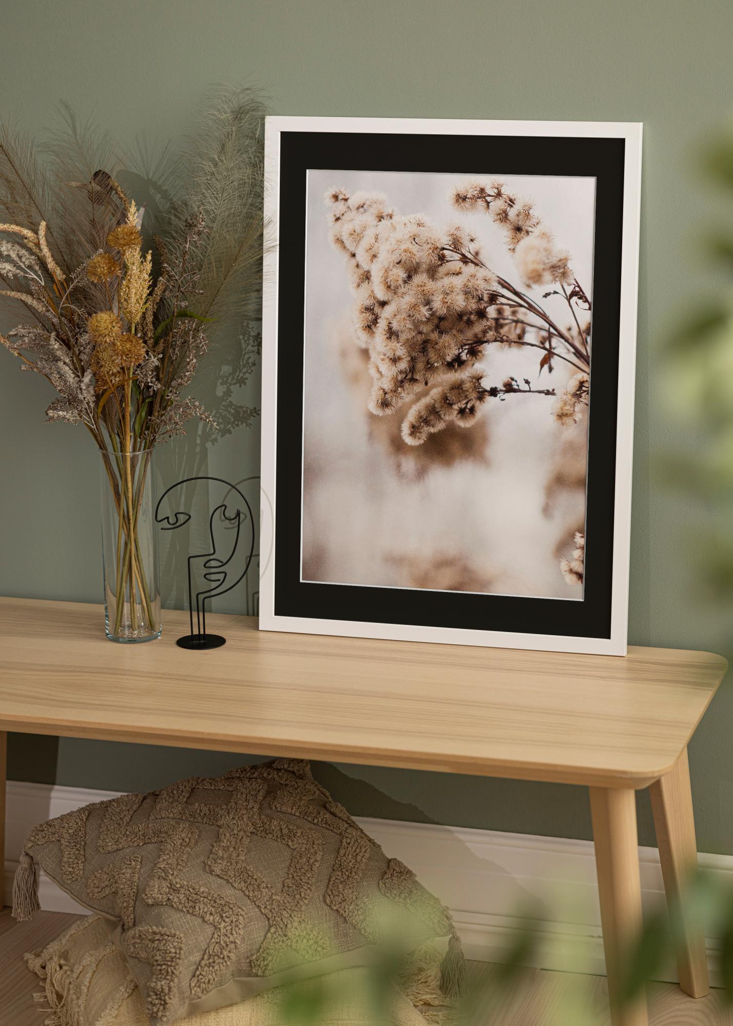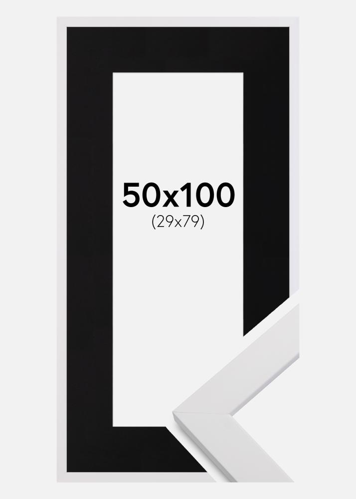 Rahmen White Wood 50x100 cm - Passepartout Schwarz 30x80 cm