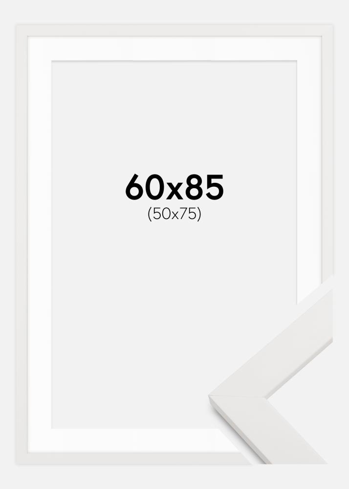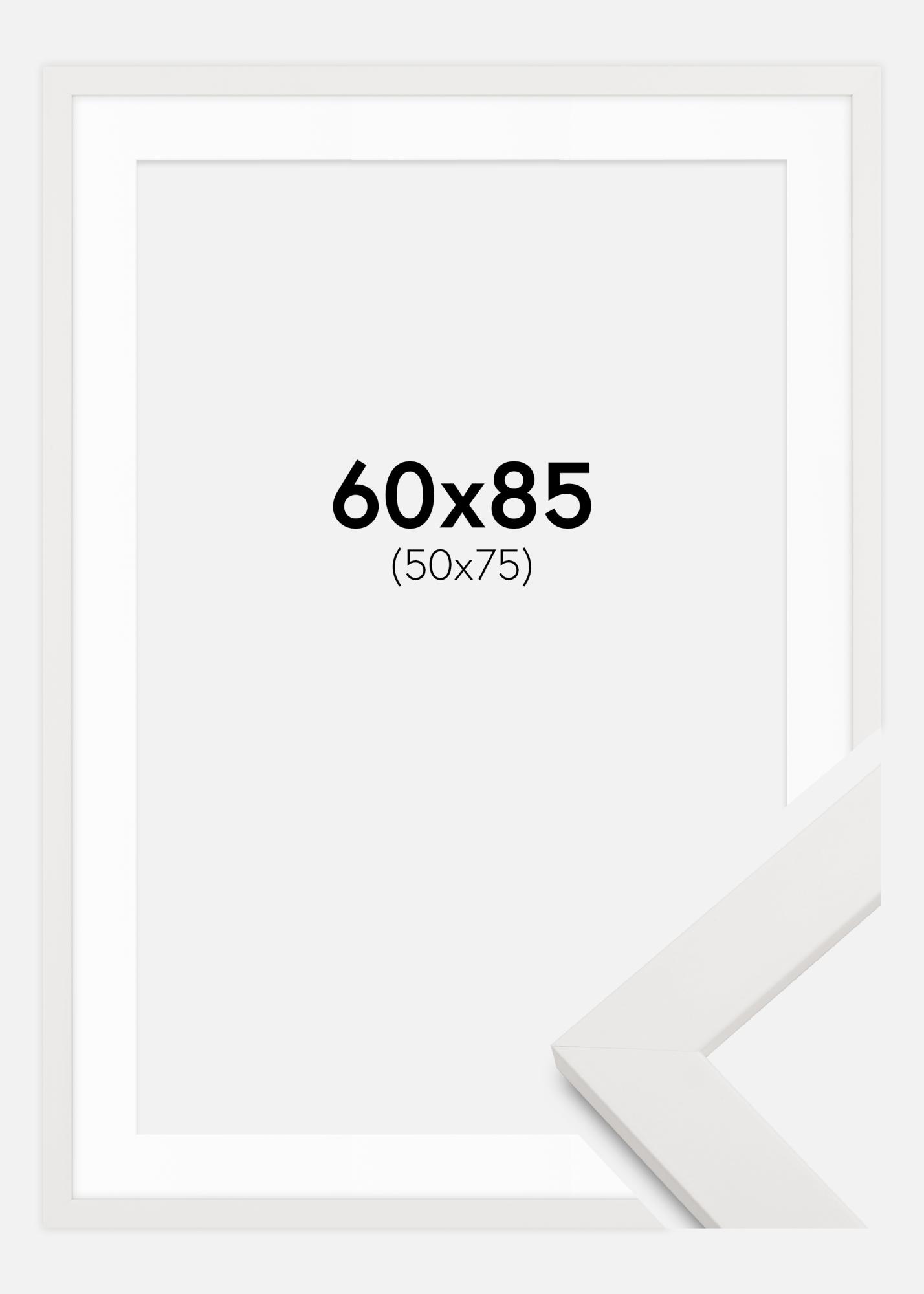 Rahmen Weiß Holz 60x85 cm - Passepartout Weiß 51x76 cm