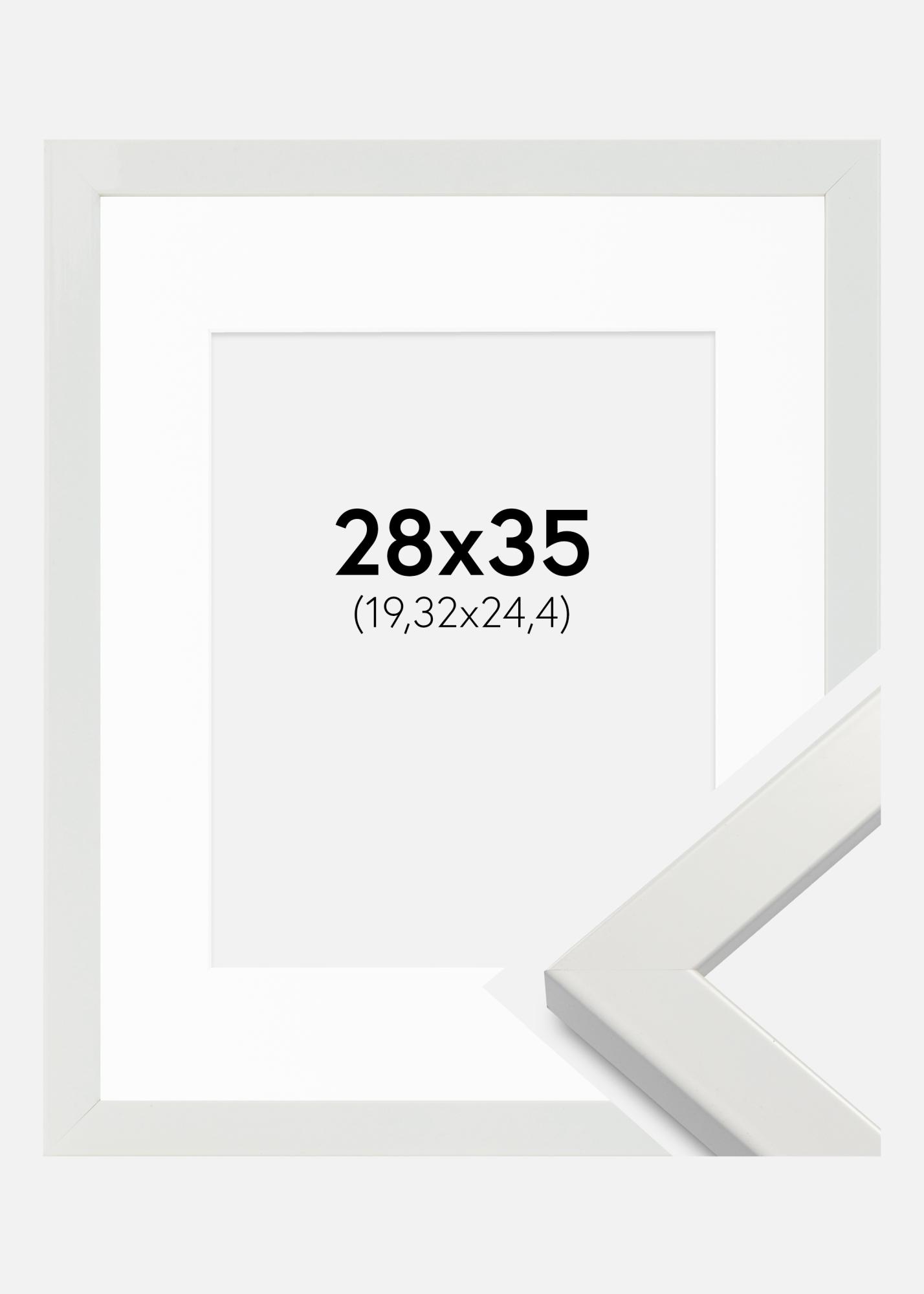 Rahmen White Wood Glossy 28x35 cm - Passepartout Weiß 8x10 inches