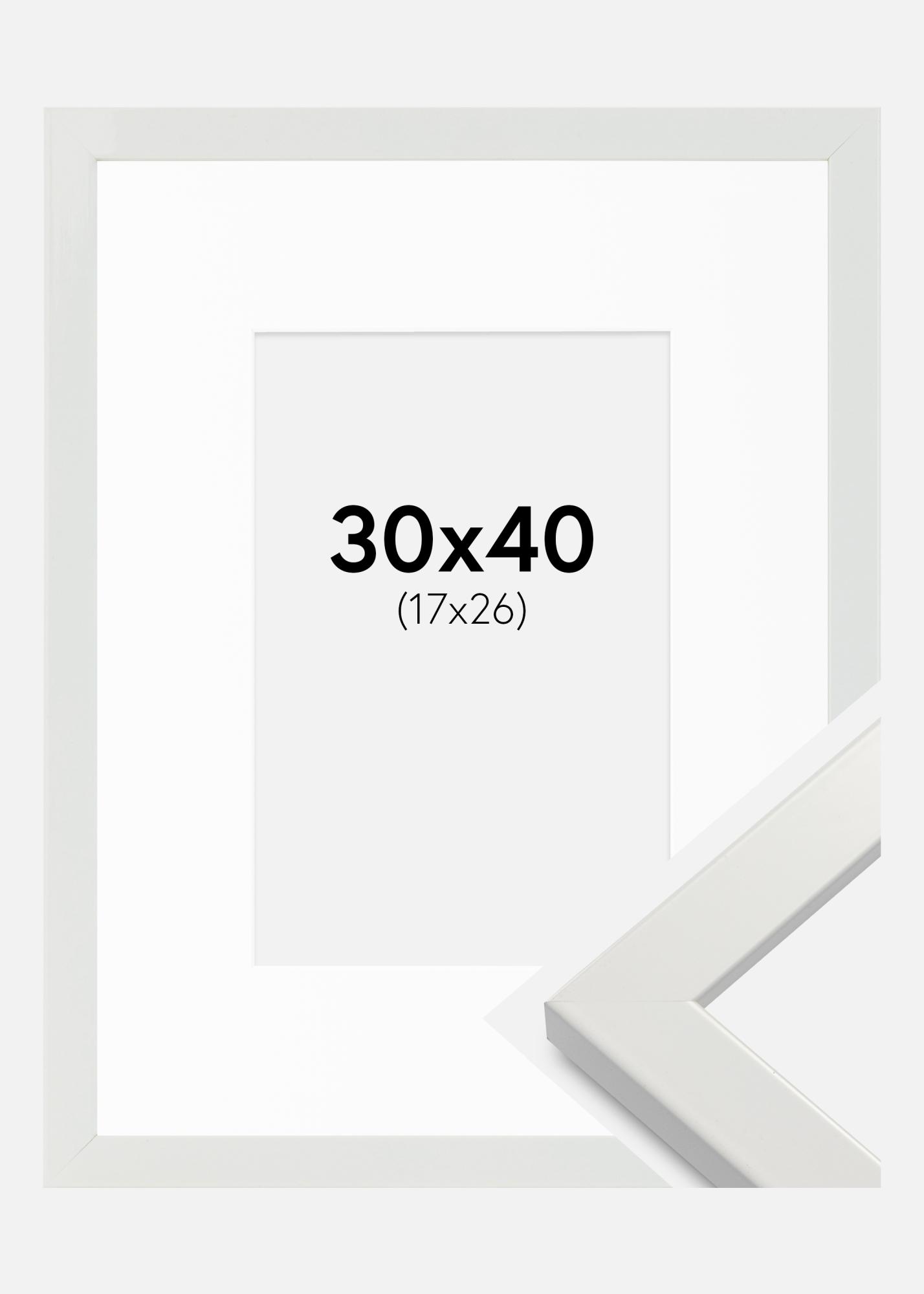 Rahmen White Wood Glossy 30x40 cm - Passepartout Weiß 18x27 cm