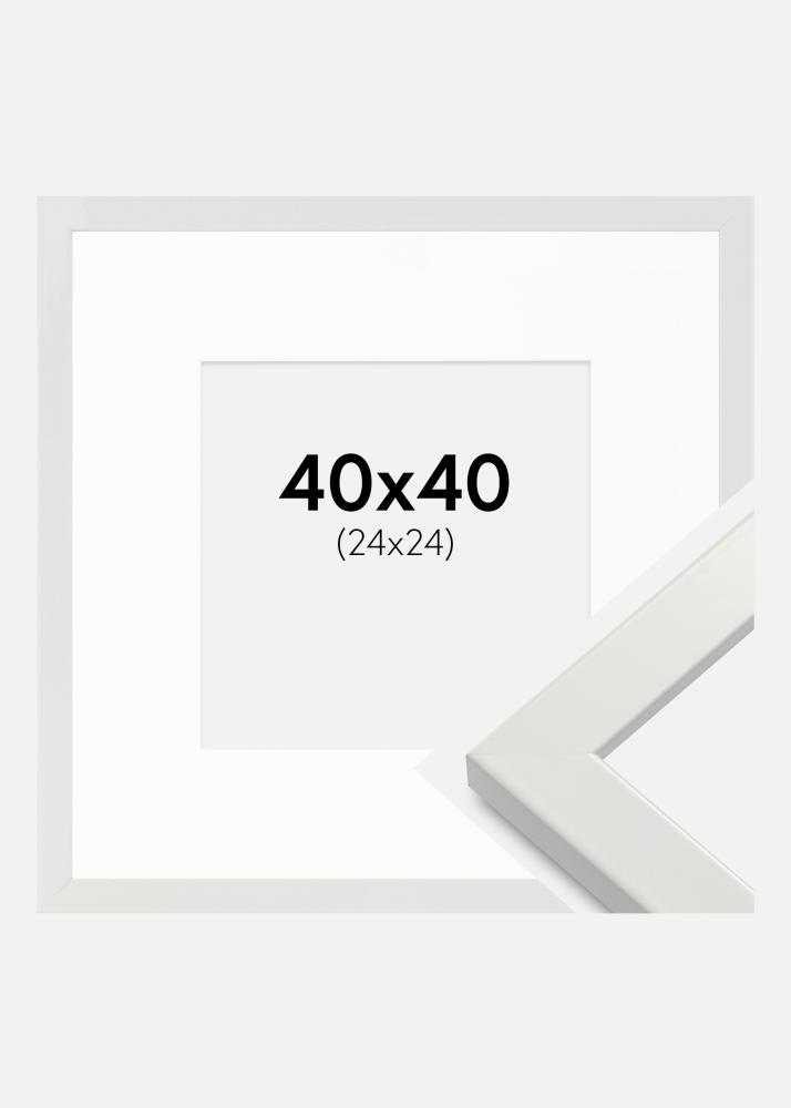 Rahmen White Wood Glossy 40x40 cm - Passepartout Weiß 25x25 cm