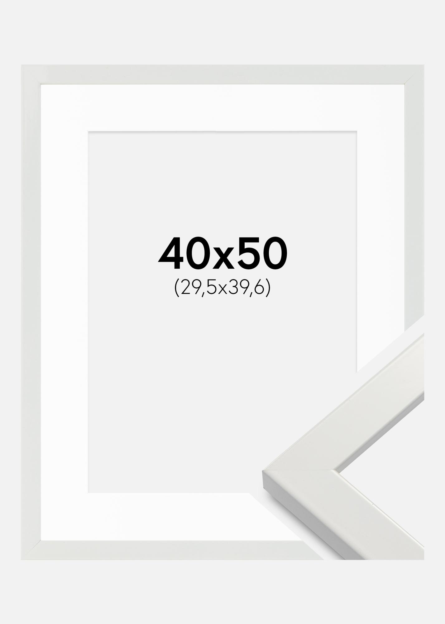 Rahmen White Wood Glossy 40x50 cm - Passepartout Weiß 12x16 inches