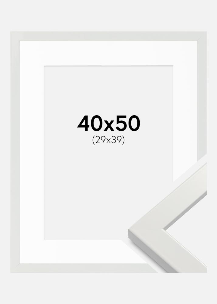 Rahmen White Wood Glossy 40x50 cm - Passepartout Weiß 30x40 cm