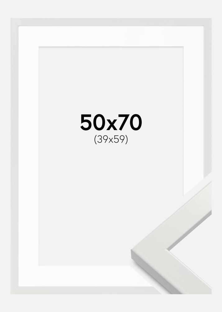 Rahmen White Wood Glossy 50x70 cm - Passepartout Weiß 40x60 cm