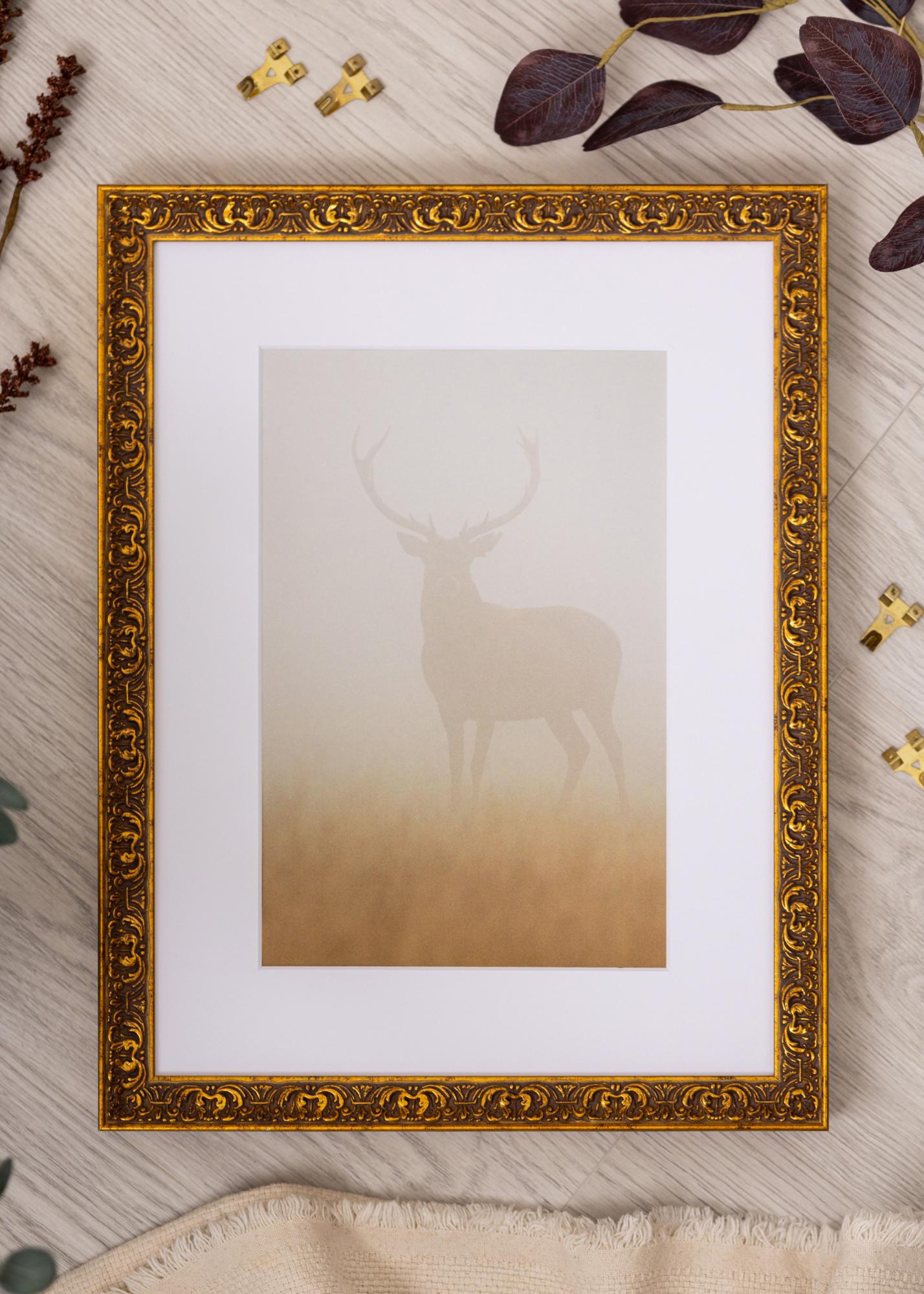 Dieser elegante Bilderrahmen in Gold ist eine perfekte Kombination aus Tradition und Luxus. Mit seinen dekorativen, verzierten Details und der antiken Goldoberfläche verleiht er ein Gefühl zeitloser Schönheit. Der Rahmen ist ideal, um Porträts, Kunstwerke oder historische Motive hervorzuheben, was ihn zu einer ausgezeichneten Wahl für diejenigen macht, die ihren Bildern eine zusätzliche Dimension verleihen möchten.