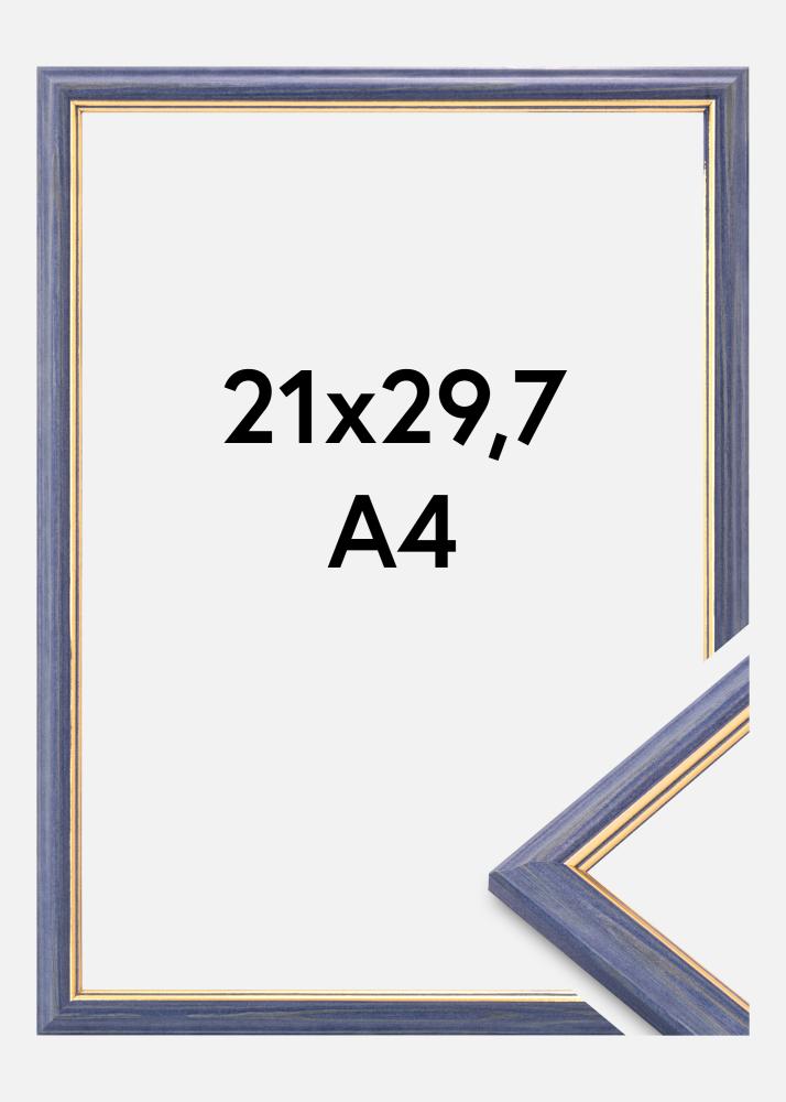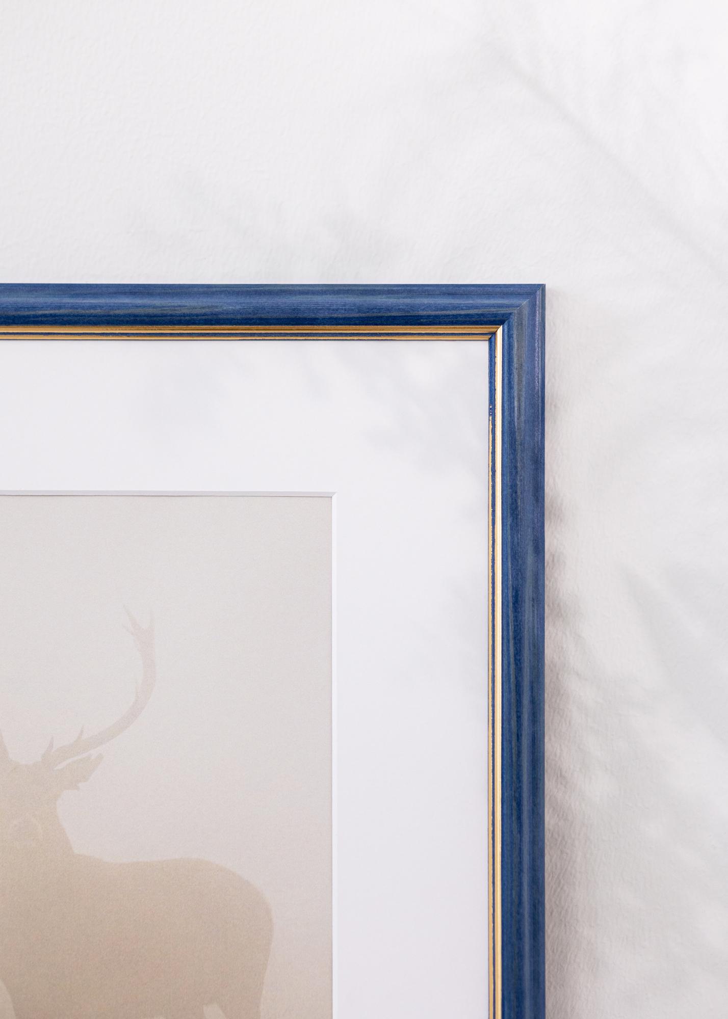 Dieser elegante Fotorahmen in der Größe 21x29,7 cm ist eine perfekte Kombination aus klassischem Design und moderner Funktionalität. Mit seinem tiefblauen Finish und subtilen Golddetails entlang der Kante bietet er eine raffinierte Einrahmung für Ihre Lieblingsmotive. Der schmale, profilierte Rahmen bietet einen stilvollen Kontrast, der Kunstwerke oder Fotografien auf einzigartige Weise hervorhebt. Die Holzstruktur ist dezent durch die Farbe sichtbar, was dem Bilderrahmen einen warmen und lebendigen Charakter verleiht.