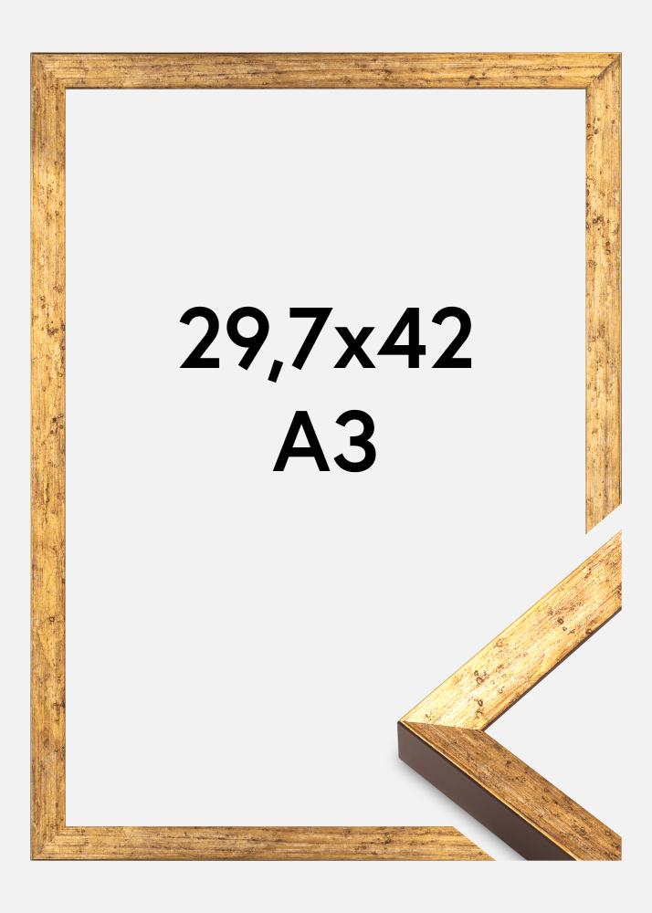 Um Ihre Bilder zu schützen, verfügt der Rahmen über ein kristallklares und splitterfreies Acrylglas. Das Acrylglas hat eine Schutzfolie auf beiden Seiten, die vor der Verwendung entfernt werden muss, um optimale Klarheit sicherzustellen. Mit den Maßen 29,7 x 42 cm bietet dieser Bilderrahmen einen anspruchsvollen Look, der Ihrem Zuhause eine warme und elegante Note verleiht. Egal, ob Sie Familienfotos oder Kunstwerke ausstellen möchten, dieser goldfarbene Rahmen wird Ihren Bildern die Aufmerksamkeit schenken, die sie verdienen.