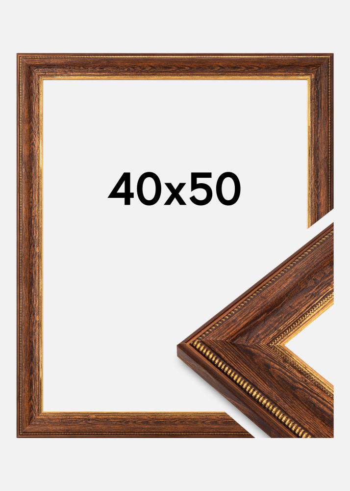 Dieser elegante Bilderrahmen in der Größe 40x50 cm ist eine perfekte Kombination aus rustikalem Charme und klassischer Eleganz. Aus hochwertigem Holz gefertigt, hat der Rahmen eine tiefe und reiche braune Farbe, die die natürliche Holzstruktur hervorhebt. Die dekorativen Golddetails entlang des Innenrandes bieten eine anspruchsvolle Note, die sowohl traditionelle als auch vintage-inspirierte Inneneinrichtungen ergänzt.