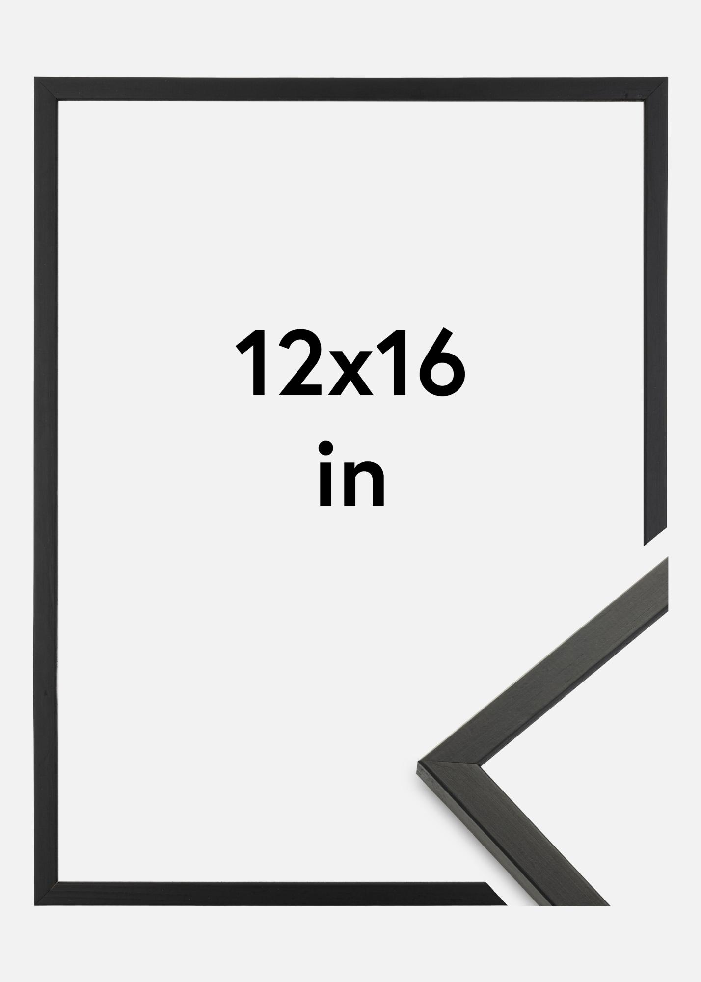Schwarzer Bilderrahmen, stilvoll aus Holz gefertigt, mit einer Rahmenleiste von 13 mm Tiefe und 13 mm Breite. Damit erhält der Bilderrahmen sein ansprechendes, schlankes Design und wirkt trotz der schmalen Leisten solide und stabil. Ein Bilderrahmen in Schwarz ist ein Rahmen-Klassiker, der so gut wie jedes Bildmotiv schön einrahmt und so recht in den Fokus rückt. Dieser Holzrahmen ist mit echtem Glas ausgestattet. Auf der Rückwand des Bilderrahmens befinden sich Wandhalterungen für die Aufhängung im Quer- als auch im Hochformat. Der Bilderrahmen Galant Schwarz ist in mehreren Größen erhältlich. Abgebildet ist die Größe 12x16 Inches (30,48x40,64 cm).