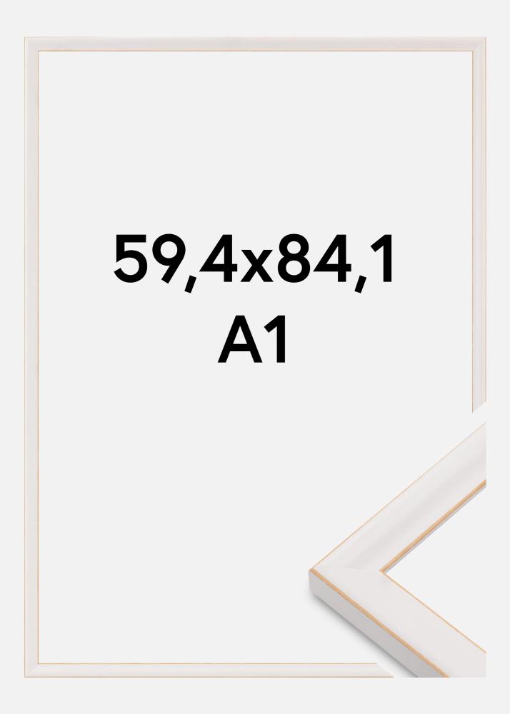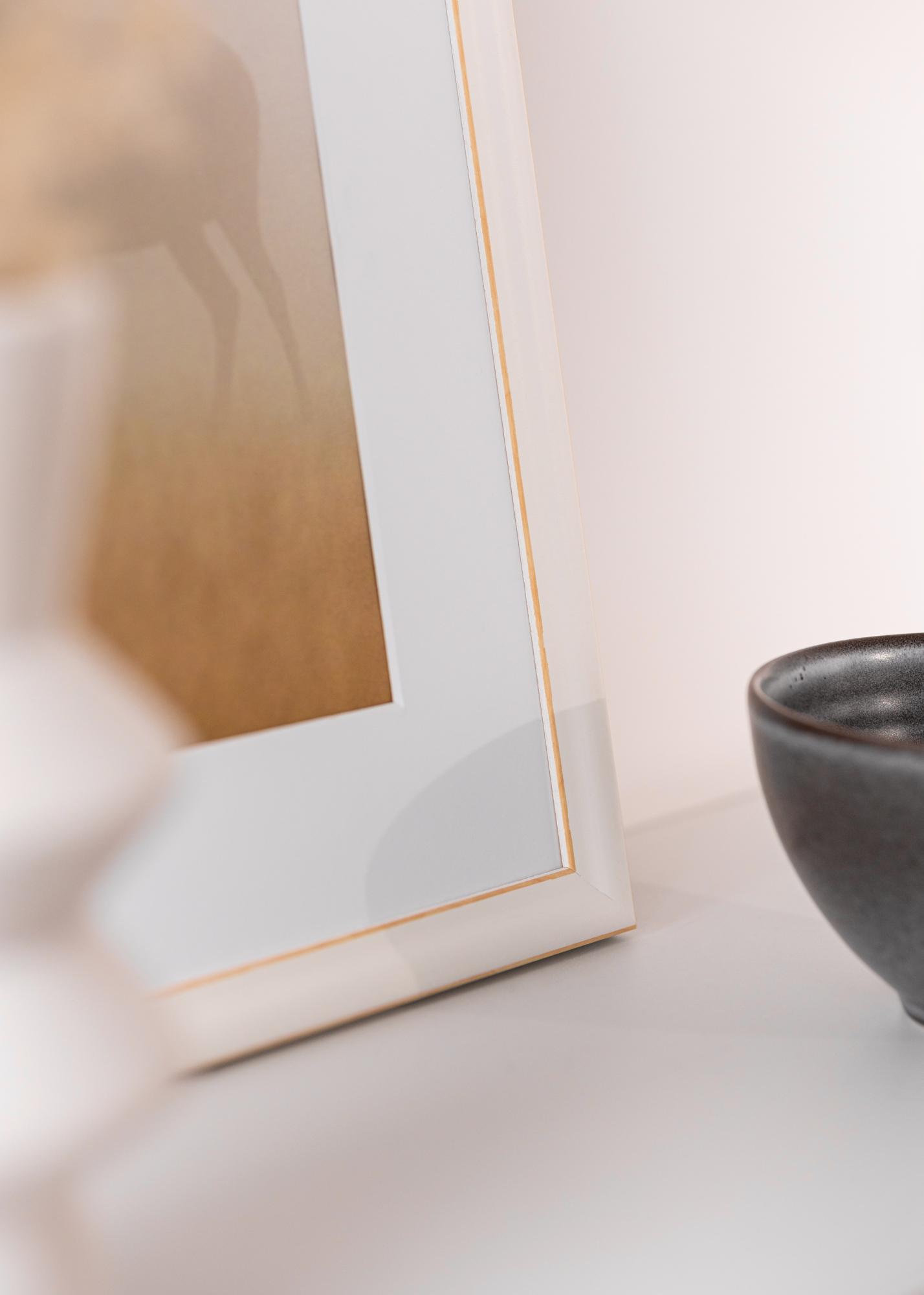 Mit seiner Größe von 59,4 x 84 cm und dem eleganten Design ist dieser weiße Rahmen mit Goldkante eine ausgezeichnete Wahl, um Ihren Bildern die Aufmerksamkeit zu schenken, die sie verdienen. Egal, ob Sie ein Kunstwerk oder eine liebe Erinnerung präsentieren möchten, dieser Fotorahmen wird dies mit Eleganz und Finesse tun.