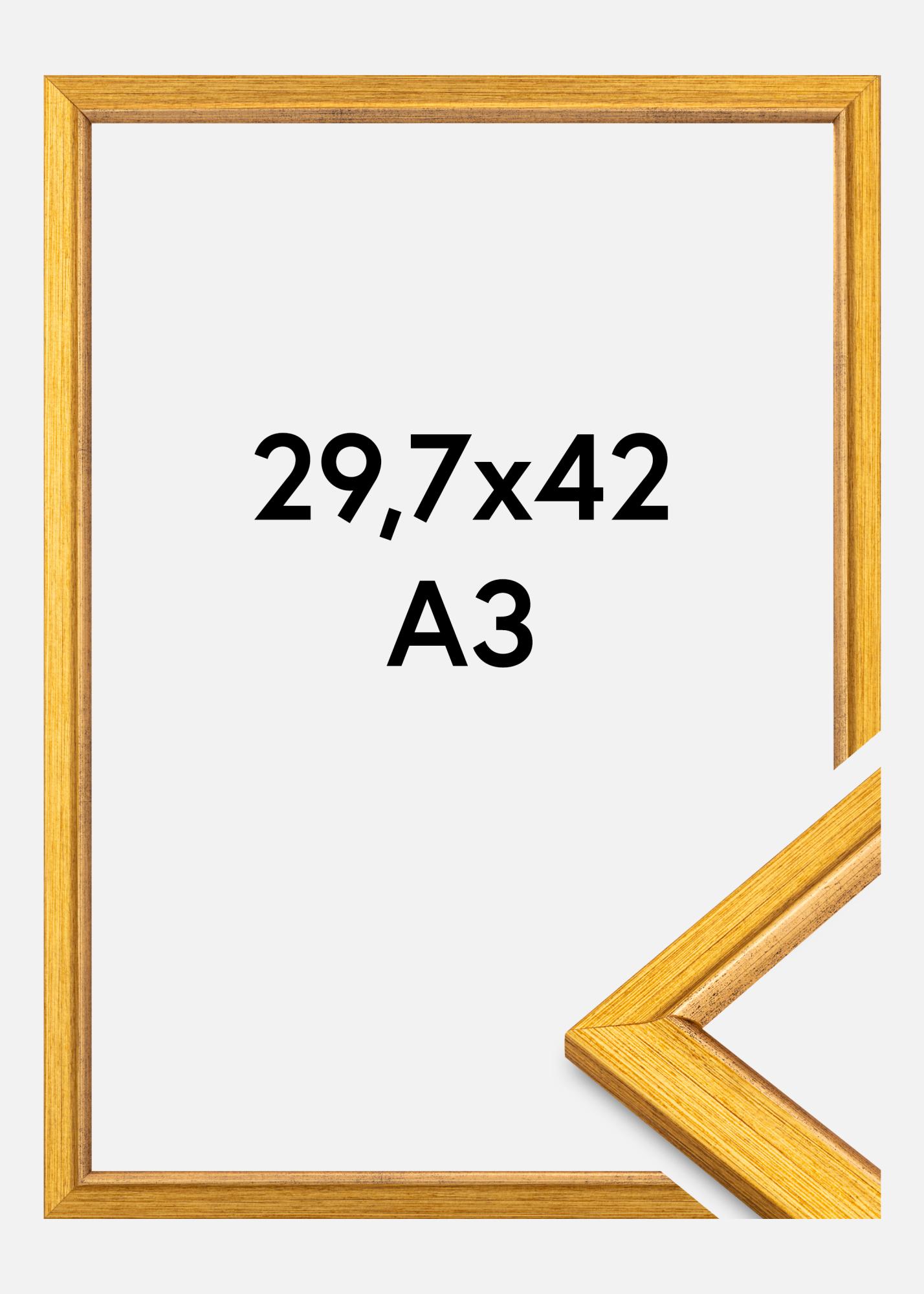Dieser goldfarbene Bilderrahmen passt perfekt für Motive in der Größe 29,7 x 42 cm und ist eine ausgezeichnete Wahl für diejenigen, die ihren Bildern eine elegante Einfassung geben möchten. Egal ob Sie Kunstwerke, Fotografien oder Poster präsentieren wollen, dieser Rahmen wird Ihre Motive auf stilvolle Weise hervorheben.