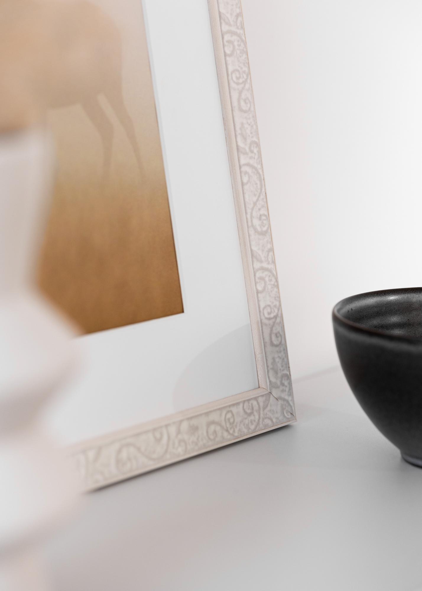 Mit seinem dünnen Profil und den subtilen, verzierten Mustern entlang der Kanten bietet dieser Fotorahmen ein stilvolles und romantisches Gefühl. Er passt hervorragend zu klassischen oder ländlichen Einrichtungsstilen und wird in Ihrem Zuhause zu einem schönen Detail. Egal, ob Sie Kunstwerke oder Fotografien zeigen möchten, dieser Rahmen in der Größe 59,4 x 84 cm wird Ihren Motiven die Aufmerksamkeit schenken, die sie verdienen.