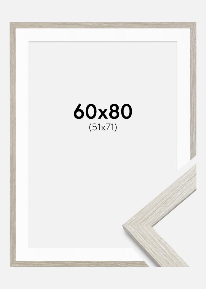 Rahmen Stilren hellgrau Eiche 60x80 cm - Passepartout Weiß 52x72 cm