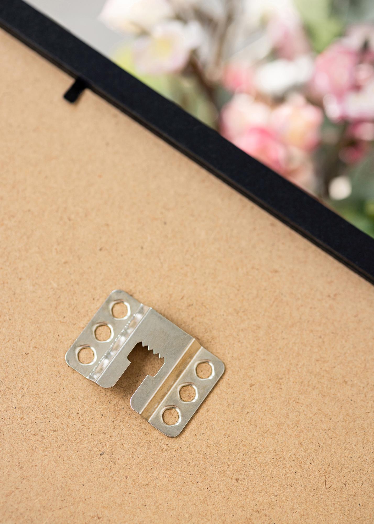 Der Rahmen ist mit Metallaufhängern auf der Rückseite ausgestattet, was es einfach macht, ihn sowohl horizontal als auch vertikal aufzuhängen. Dies bietet Ihnen Flexibilität, die Präsentation an Ihren Raum und Ihre Vorlieben anzupassen. Die Tiefe des Bilderrahmens beträgt 15 mm, was zu seinem eleganten und anspruchsvollen Aussehen beiträgt.