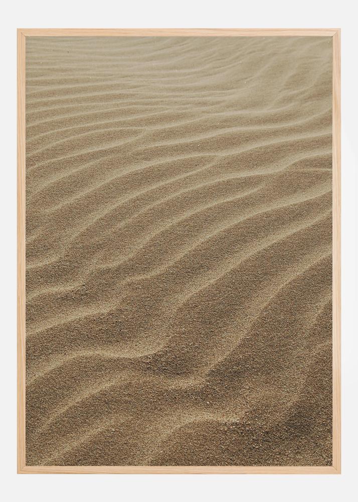 Ein einfaches Poster mit Wellen im Sand. Der Sand füllt das gesamte Bild aus. Aus der Nähe kann man die Sandkörner in den vom Wind erzeugten Rinnsalen in der Wüste erkennen. Bestaunen Sie die Wunder der Natur in diesem atemberaubenden Foto.