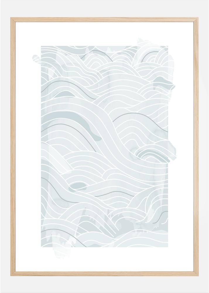 Ein Ozean-Poster mit weichen blauen abstrakten Linien und Wellen auf weißem Hintergrund. Verschiedene Blautöne und unterschiedliche Linienstärken bilden die wogenden Wellen. Lassen Sie Ihre Gedanken schweifen und lassen Sie sich von diesem sanften Ozean-Design mitreißen.