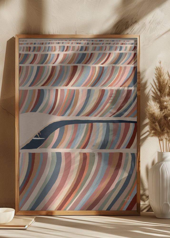 Trendy Poster, das wunderbar mit anderen Bildern kombiniert werden kann, z.B. für eine tolle Bilderwand. Und warum nicht mit einem passendem Bilderrahmen komplettieren Rahmen oder Posteraufhänger.