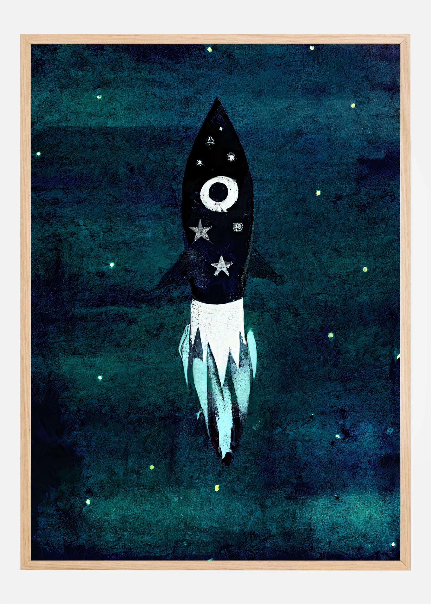 Heben Sie eine sternenklare Fantasie hervor mit diesem Poster, das eine Rakete auf einer Entdeckungsreise durch ein farbenfrohes Kosmos darstellt. Der tief gesättigte blaue Hintergrund ist mit Lichtpunkten übersät, die Sternen ähneln und eine Illusion eines unendlichen Raums vermitteln. Die Rakete selbst, verziert mit Silbersternen und dem Mond, wird zu einem Symbol für den Menschheitstraum von Raumfahrten und Erkundung des Unbekannten.